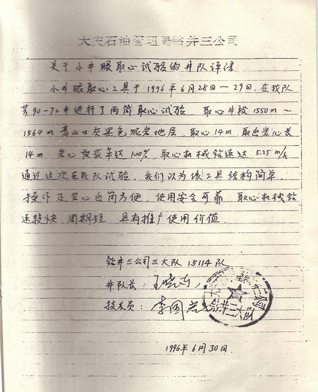 中國大慶達美取芯技術中心
